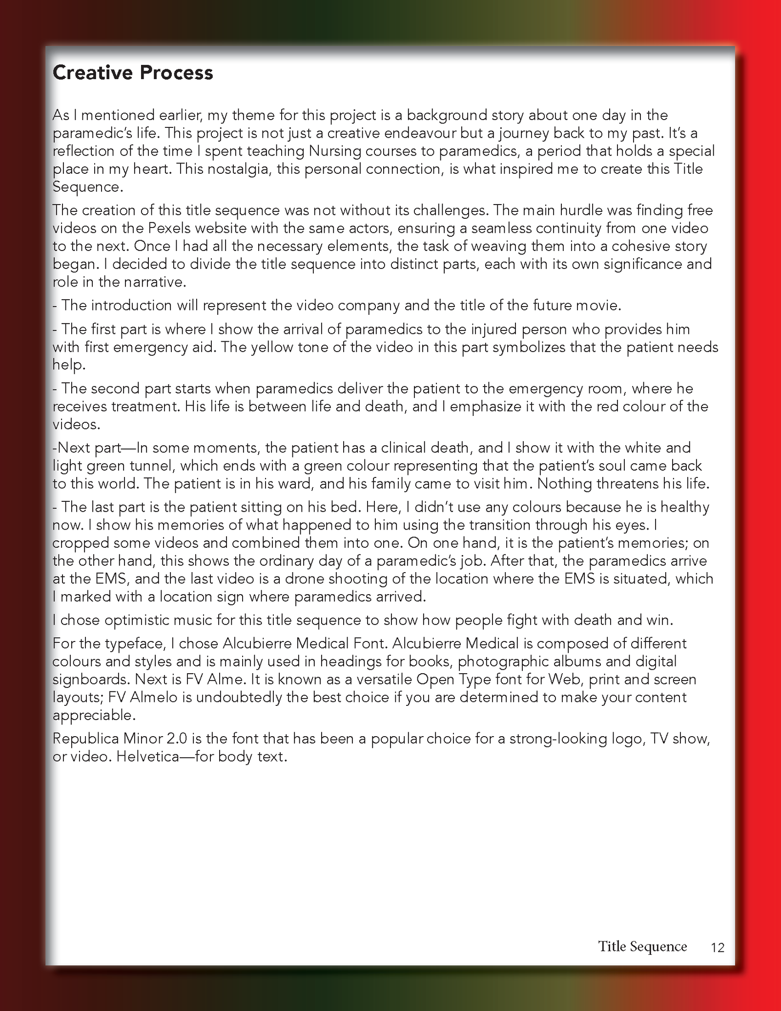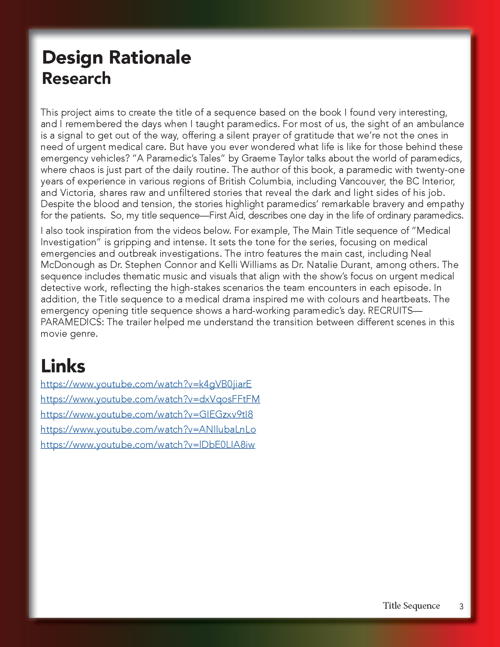 My goal was to create an engaging title sequence about paramedics. In this Case Studies, I included: